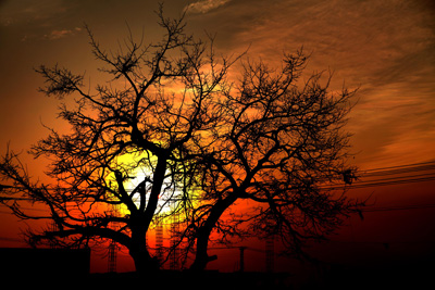 به تک درخت بی برگی می مانم در زمستان